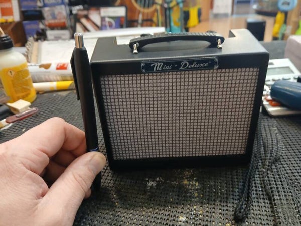 THIS FENDER MINI DELUXE AMP IS PRETTY POWERFUL. IT SUPPRISED ME WHEN I PLUGGED IT IN. IT DDIDNT BLIPP OUT ON ME . . IT FEATURES, AUTHENTIC FENDER STYLE, SINGLE 3" SPEAKER, 1 WATT OF POWER, 9V Battery OR DC- POWERED, HEADPHONE OUT, 9 VOLT BATTERY INCLUDED